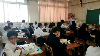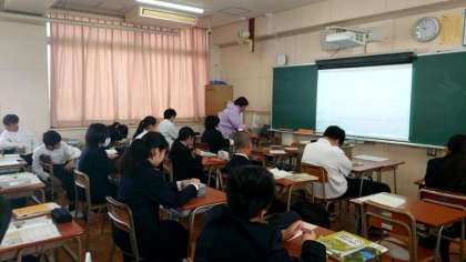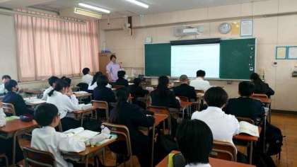 1年生英語の授業で教科書の英文(お話)について学習中。スクリーンには英文に関する質問が映され、生徒の皆さんが「 true (本当)か false (間違い) 」で答えます。お話の内容が理解できていないと、答えるのが難しいですね。皆さんの回答は合っていましたか?
