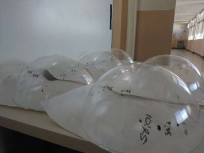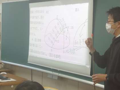 3年生理科の授業で太陽の1日の動きを調べました。透明半球を使って、朝〜夕方の太陽の位置を記録しました。記録した点を線で結ぶと、どんな動きをしているかが、わかるそうです。太陽の日周運動を確かめましょう。