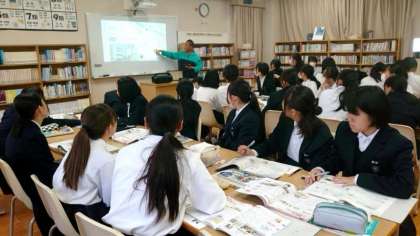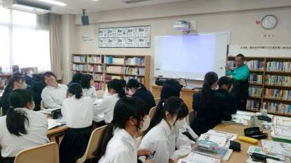 3年生女子の皆さんが保健の授業を受けています。今日は「健康を守るための社会の仕組み」について教わります。日本では法に基づいて、保健所と保健福祉センターが設置され、私たちの健康を守るお仕事を担っています。保健福祉センターは区役所の中にありますよ。