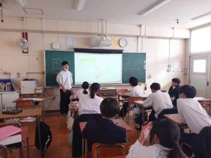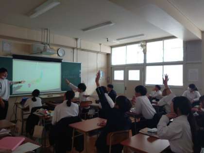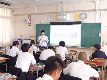 2年生社会科の授業で「山陰地方」の特徴を学習します。今日は鳥取県出身の先生を招いて、県の特色を教わります。自然豊かで「住みたい田舎」ランキング1位になった町があるそうですよ。皆さん、鳥取県の魅力をいろいろと教えていただきましょう。