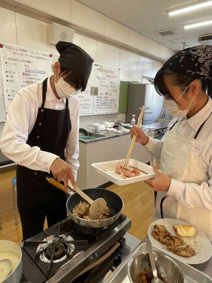 今日は2組が調理実習です。各班の材料係さんが朝の8時前に集合して準備をしてくれていたおかげでスムーズに進みました。