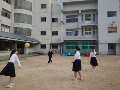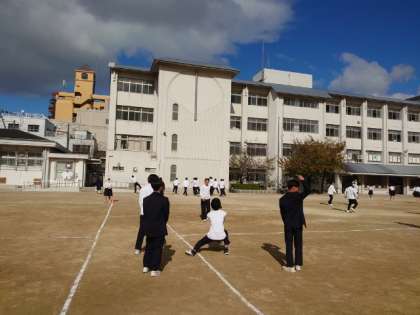 お昼休みの運動場は、学年を問わず、ボール遊びを楽しむ人でにぎわっています。仲間と楽しく過ごす時間は気持ちも身体もリフレッシュできますね。適度な運動でスッキリしたので、午後の授業も頑張れそうですね?
