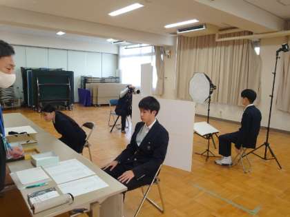昨日、3年生対象に「進路・卒業アルバム用」の写真撮影を行いました。進路写真はキリッと真面目に、卒業写真はニッコリ笑顔で写していただきます。皆さん、どんな写真になっているか仕上がりが楽しみですね。
