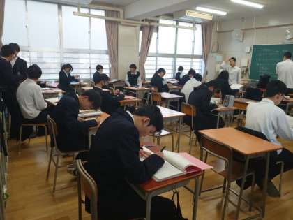 3年生の皆さんもテスト勉強に励んでいます。この土日に頑張った学習内容が出題されていると良いですね。今週は月曜、火曜・金曜 (実力テスト) とテストが続きますが、乗りきってくださいね。