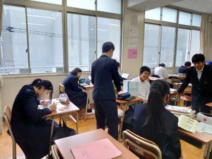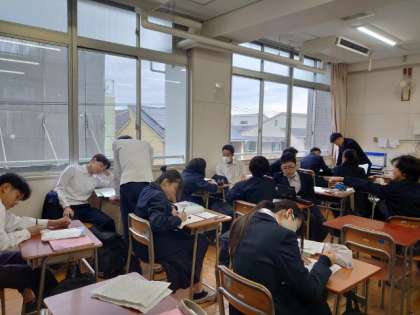 2年生の皆さんもテストに向けた勉強に余念がありません。集中してノートをチェックする一度や、クラスメイトと問題を出し合う人が多い模様。互いに励ましあって、残り3教科のテストを頑張ってくださいね。