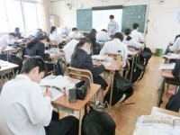 2年生国語の授業で、内海隆一郎の小説「小さな手袋」を鑑賞します。雑木林の中で年老いたおばあさんと出会った小学生のシホの物語です。今日はグループに分かれて、小説の各場面の内容を簡潔にまとめます。互いに意見交換しながら、内容を整理しましょう。