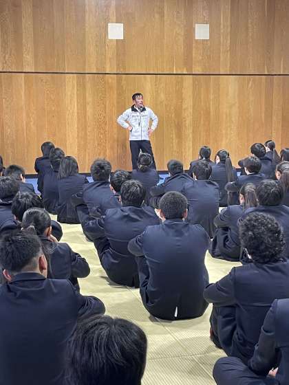 委員長たちの声掛けで25分に武道場集合が完了しました!今日は矢田先生のお話です。
