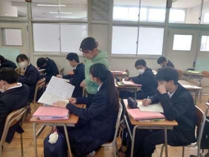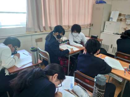 1年生国語の授業で来年2月に受験予定の「漢字検定」の学習に取り組んでいます。3級から5級まで、それぞれがめざす階級のテキストが配られました。来る検定試験に向けて、さっそく問題を解いていきます。わからない点は先生に質問して、合格をめざしましょう。