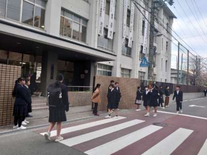 薄い雲が広がる週末の朝。昨日の3年進路懇談に続いて、今日から1、2年の期末懇談が始まります。全学年、午前中の授業を受けた後、給食をいただいて13時過ぎに下校となります。午後の過ごし方を工夫してくださいね。