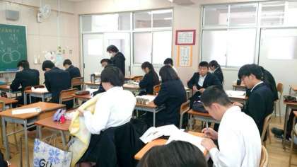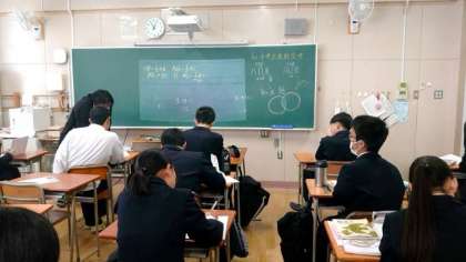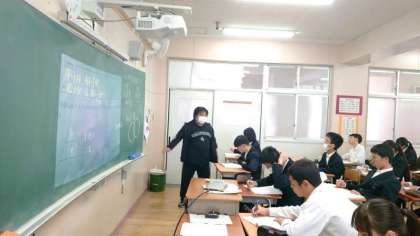 3年生数学の授業で「中点連結定理」を学習します。三角形の底辺でない2つの辺の中点を結んだ線分は底辺に平行かつ底辺の長さの半分になるそうです。図形の証明などで活用するので、皆さん覚えてくださいね。