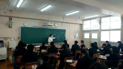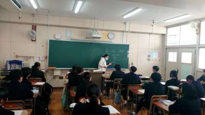 2年生社会科の授業で2学期の学習内容を振り返ります。今学期は「江戸時代」を中心に学習しました。今一度、政治や経済、文化など、さまざまな視点で江戸時代の特徴をおさらいします。配られたワークシートに要点を書き込みましょう。