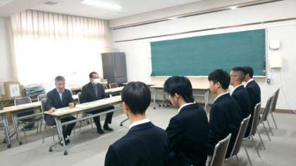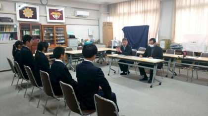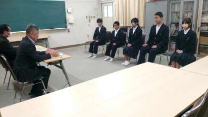 3年生の皆さんが面接の練習を行っています。自己紹介に始まり、中学校生活で頑張ったことや自己PR、高校生活の抱負などをお話します。いつもの教室とは違う雰囲気に、少し緊張しますよね。