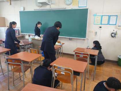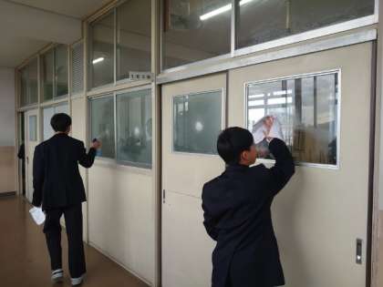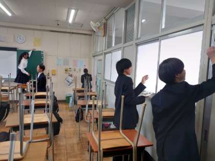 1年生の皆さんも大清掃に励んでいます。各クラスに配られた「お掃除グッズ (各種洗剤やメラミンスポンジが入っています) 」を使って、すみずみまで美しく仕上げます。スッキリとなった教室で3学期を迎えられそうですね。