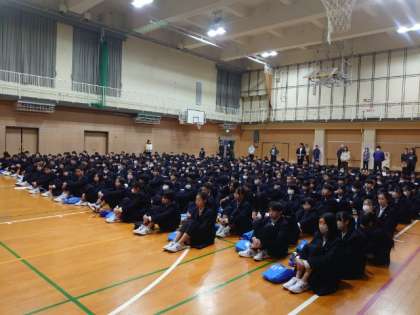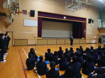 終業式では生徒会の皆さんから「規則正しい生活を心がけ、有意義な冬休みを過ごしましょう」と、呼びかけがありました。3学期の始業式は1月8日 (水)です。 冬休み中、事故やトラブルに気をつけてくださいね。