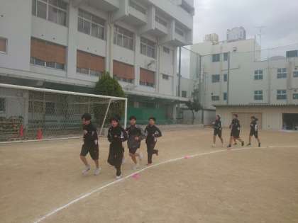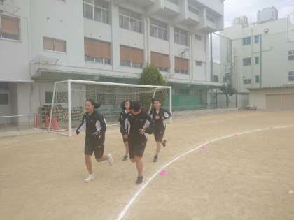 運動場では陸上部の皆さんが活動しています。今は「10分間走」の練習中。身体の上下動をできるだけ抑え、省エネ走法を意識します。冬は長距離の走力を高める良い季節です。来年の駅伝大会に向けて頑張ってくださいね。