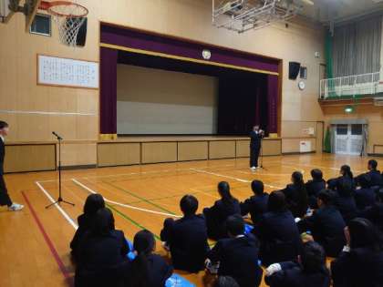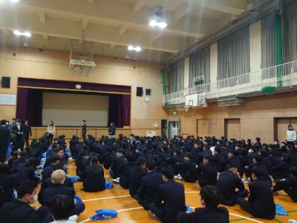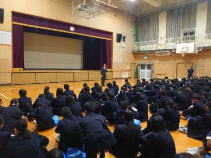 体育館で3学期始業式を行いました。式が始まる前の体育館では、冬休みの出来事を互いにお話している模様。皆さん、久しぶりにクラスメイトと再会し、笑みがこぼれます。今学期も仲間と一緒に、より良い学校生活を築いていきましょう。