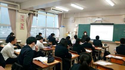 3年生英語の授業で論説文を学習します。将来のエネルギー問題についての英文です。まずは文中に出てくる単語の確認から。専門的な言葉が出てくるので、訳すのも難しそうです。これまでの英語学習の集大成。一文ずつ読み進めましょう。