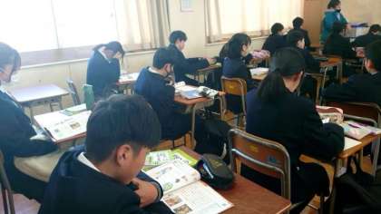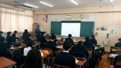 1年生英語の授業で「過去形」の英文をおさらいします。教科書にも過去形を使った英文がたくさん出ているようです。「一般動詞の原形+ed 」で「〜しました」と表します。これからの学習でも用いる表現なので、しっかりとマスターしましょう。