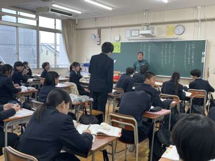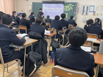 鼻をすすったり咳をしている人もいますが、2年生は比較的みんな元気に登校しています。1週間の始まりの道徳です。