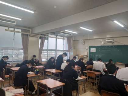 テスト2日目を迎えました。朝の3年生教室では、クラスメイトがお互いに予想問題を出し合う姿が見られます。実際に出題されていると良いですね。テスト開始まであともう少し。今日も全力で頑張りましょう。