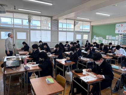1年生では、各クラス1時間ずつ、ヒューマンキャンパスのぞみ高等学校より講師の先生をお招きしてキャリア学習SPトランプを実施していただきました。