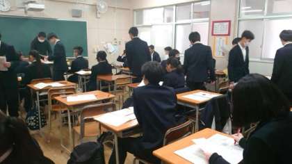 今週実施された3年生学年末テスト。現在、理科のテストを返却中。皆さん互いに結果を見せ合いながら、喜んだり悔しがったり、いつもの光景が見られます。気持ちが落ち着いたら、テスト内容を見直し、ぜひ対策を講じましょう。