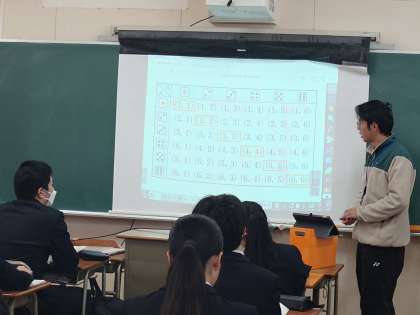 2年生数学科で「確率」の学習を行います。ある出来事(現象)がどれくらい起こりやすいかを考えるのが確率だそうです。今日は2つのサイコロの出目がゾロ目になる確率を求めます。ゾロ目になるパターンは6つなので、確率はどうなるでしょうね?