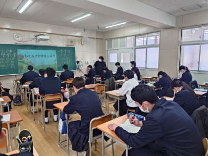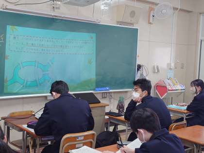 3年生数学の授業で図形学習の応用編に取り組みます。いろんなタイプの図形を見て「一筆書き」が可能かどうかを考えます。図形を作る頂点から何本の辺が伸びているかがポイントだそうです。皆さん、解き方が見つかりましたか?