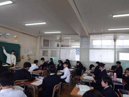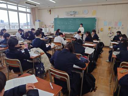 1年生数学の授業で学年末テストの結果を返却中。昨日行なわれたテスト結果が早速返ってきました。先生が問題のポイントを説明してくださいます。図形に関する学習は今後も(よりレベルアップして)習うので、今のうちにしっかりとマスターしておきましょう。