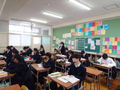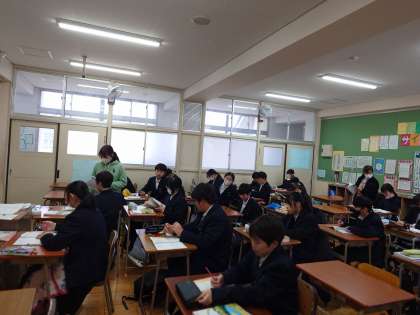 1年生国語の授業で「連体詞」の問題を解いています。連体詞は体言(名詞)を含む文節を修飾するそうです。「大きな◯◯」の「大きな」は連体詞。用言(動詞や形容詞など)を修飾する副詞(「とても」「いつも」など)との違いの見分け方を教わりましょう。