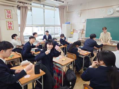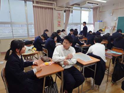 3年生の皆さんがメッセージカードを作成しています。これまでお世話になった方々に感謝の気持ちを伝えます。お家の方はもちろん、クラスメイトや部活の仲間、先生方など、たくさんの方が頭に浮かびます。素敵なメッセージができそうですね。