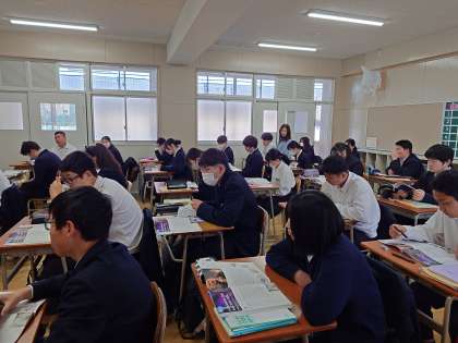 3年生英語の授業で、iphoneで知られるApple社を創業した起業家スティーブ・ジョブズ氏のスピーチを読んでいます。米国のスタンフォード大学の卒業式で行ったスピーチは、人生の大切な教えが散りばめられている伝説のスピーチと呼ばれています。ジョブズ氏のメッセージを読み解いてみましょう。