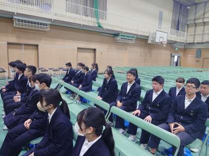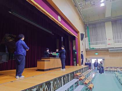 3年生の式練習が続きます。式のメインは卒業証書の授与。1人ずつ壇上に上がり、卒業証書を受け取ります。壇上に上がると急に緊張してしまいますね。証書を受け取る時の動きを忘れてしまわないように気をつけましょう。