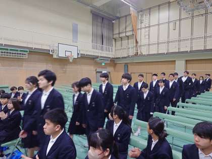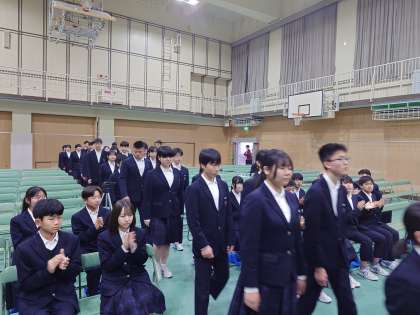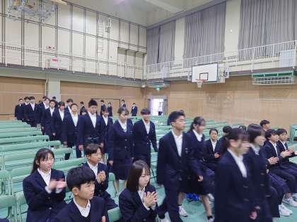 卒業式を明日に控え、予行演習が行なわれています。卒業生の入場を在校生が拍手で迎えます。明日は多くのご来賓・お家の方々がお祝いに駆けつけてくださいます。皆さんの凛々しく巣立つ姿を見ていただきましょう。