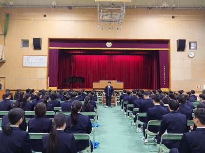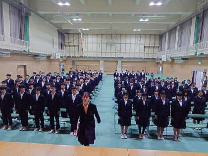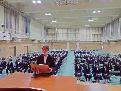 予行演習も後半に。在校生の代表が先輩方にお礼の気持ちを込めて「送辞」を読み上げます。続いて卒業生の代表が「答辞」を通して、後輩や先生・お家の方々に感謝の気持ちを伝えます。今日は予行なので冒頭のみ披露しました。明日がとても楽しみです。