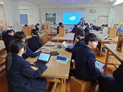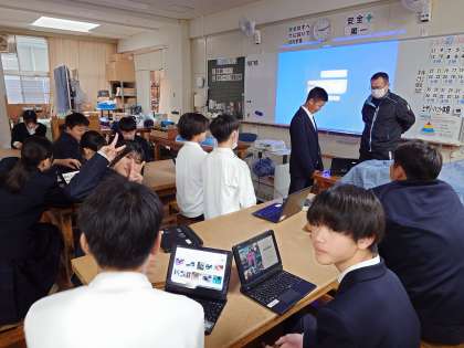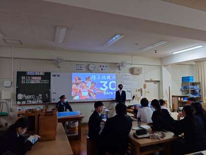 2年生技術科で取り組んでいるパソコンを使ったプレゼンテーション。各自が作成した資料の発表会が続いています。陸上部の皆さんから陸上選手のスゴいエピソードが紹介されました。今年は東京で世界陸上が開催されるそうです。どんな記録が出るでしょうね?