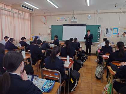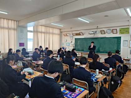 2年生の皆さんもお家からお昼ご飯を持ってきました。これから「いただきます」が始まる模様。お家の方が作ってくださったお弁当に感謝の気持ちを持って、美味しくいただきましょう。