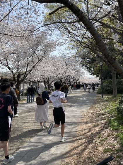 生徒たちは桜のおかげでいつもより楽しく走れたと満足そうでした。