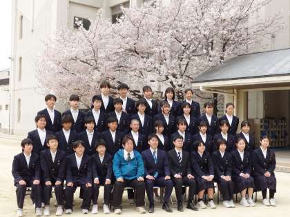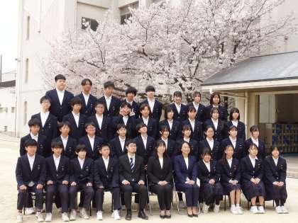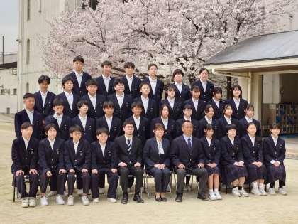 運動場では2年生の皆さんが学級写真を撮影中。昨年1年間、共に過ごした仲間との新たなスタートになりますね。学校の中心学年として、桃中を引っ張ってくださいね。