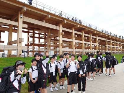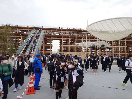 2年生の皆さんが万博を楽しんでいます。大屋根リングの大きさに圧倒されます。中学校生活の思い出が一つ増えましたね。