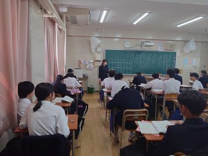 2年生国語の授業で「敬語の種類」を学習します。敬語は相手を敬う気持ちを表す言い方で「尊敬語・謙譲語・丁寧語」の3種類があるそうです。先生の説明をよく聞いて、それぞれの種類の見分け方を理解しましょう。