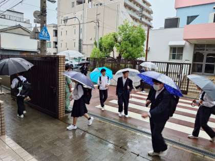鉛色の空からザーッと強い雨が降る朝。今日は皆さん傘を手に登校してきました。下校時に止んでいると良いですね。明日から4連休。次に登校するのは5月7日(水)になります。水曜日ですが、時間割は「月曜日」なので気をつけましょう。