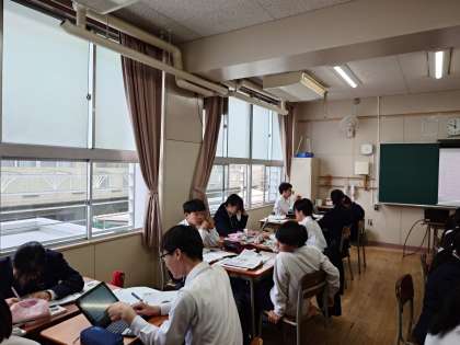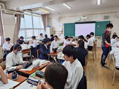 2年生社会科の授業で日本の気候の特徴を学習します。南北に長く連なる日本列島は季節風の影響もあり、地域によって気候の特徴が大きく異なります。今日は雨温図などの資料をもとに、グループ毎に特徴を話し合います。皆さん、上手く特徴を見つけることが出来ましたか?