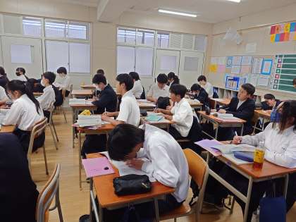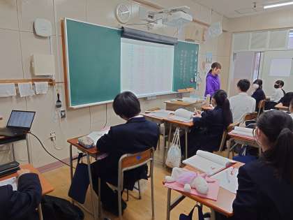 2年生国語の授業で「和歌の特徴」を学習します。5・7・5・7・7の31音で、日常の出来事や自然のようす、人々の感情をきめ細やかなに表現します。古くは「やまとうた」と呼ばれ、日本固有の詩(うた)という意味があるそうです。