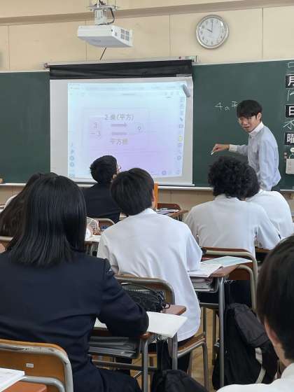 2時間目は2組で松本先生が数学の研究授業をしています。