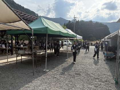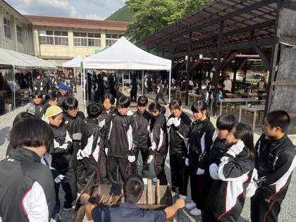 午後のアクティビティが終わり、野外炊飯の時間になりました。グループで役割を分担し、晩ごはんの準備にとりかかります。皆さん協力し合って美味しい晩ごはんを作りましょう。