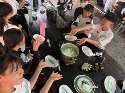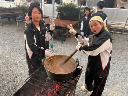 アウトドアクッキングもそろそろ完成に近づいています。さあもうすぐです!