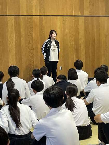 今日は新任の奥村先生のお話です。奥村先生は中学校の修学旅行で長崎に行ったそうです。平和学習をしたり、中華街で食べ歩きをしたり、出島の見学に行ったそうです。楽しかったけど一つだけ後悔がありました。荷物の準備をお母さんに頼んでしまっていた奥村先生は、3日目の朝に体操服の上着がないことに気付き、友達に借りることになったそうです。
