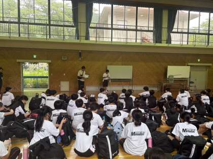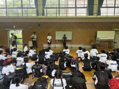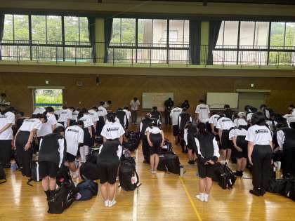 これから「退所式」を行います。2日間お世話になった野外学校の方々に全員で感謝の気持ちを伝えます。たくさんの楽しい思い出が出来て、本当にありがとうございました!