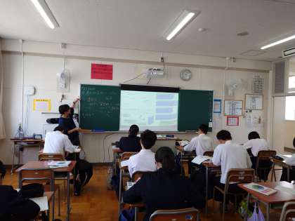 3年生理科の授業で「遺伝子」について学習します。遺伝子は細胞の核の中の染色体にあり、遺伝子の本体はDNA(デオキシリボ核酸)と呼ばれる二重らせん構造になっているとのこと。親子やきょうだいが似ているのも遺伝子によるものだそうですよ。
